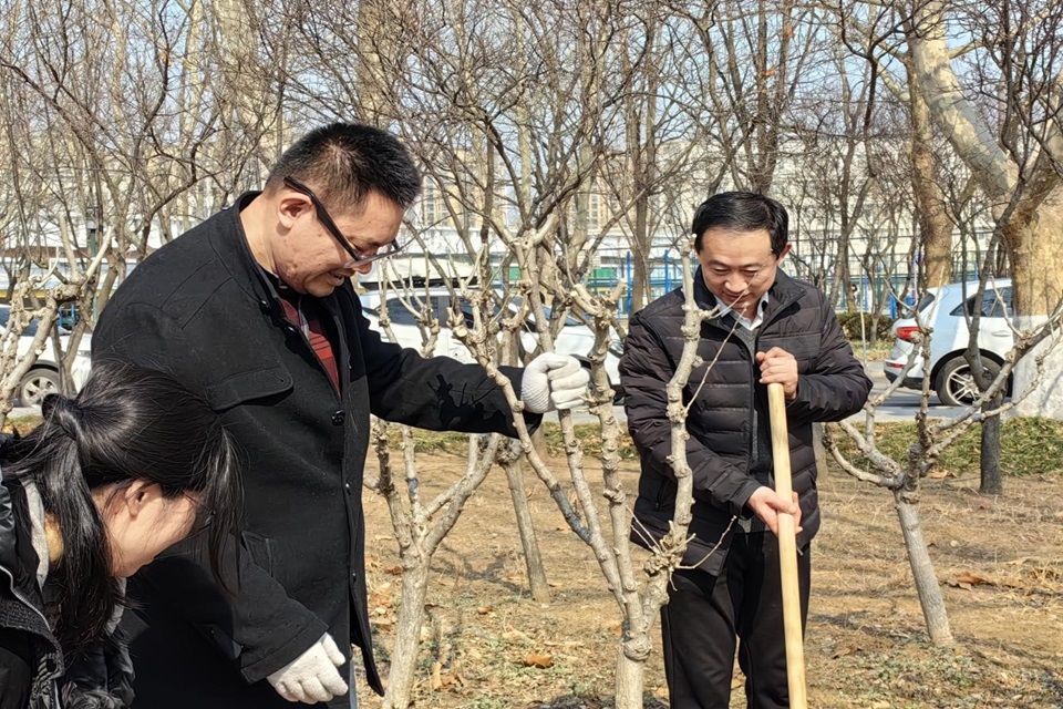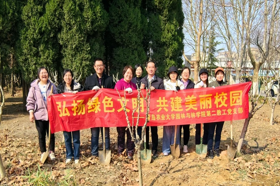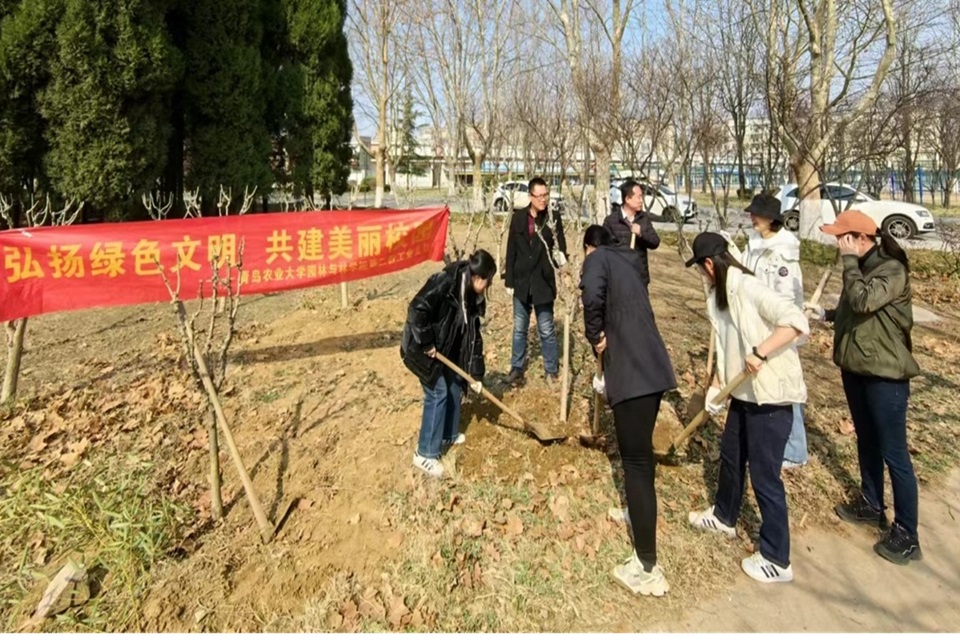 活动中,教工党员热情高涨,一丝不苟地完成刨土、挖坑、种树、填土、紧土、浇水每一道工序,精心栽种一棵棵苗木,在三月的阳光中奏响绿色的希望,为校园增添了一片生机勃勃的绿色。