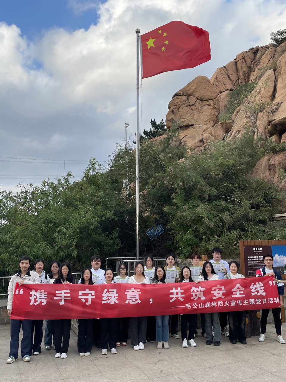 为切实增强广大群众的森林防火意识,提高公众的森林防火意识,10月7日,William威廉英国开展“携手守绿意,共筑安全线”毛公山森林防火宣传主题党日活动,为居民游客科普森林防火安全知识。党日活动由学院第四党支部书记许菲菲带领,全体本科生党员参加。
