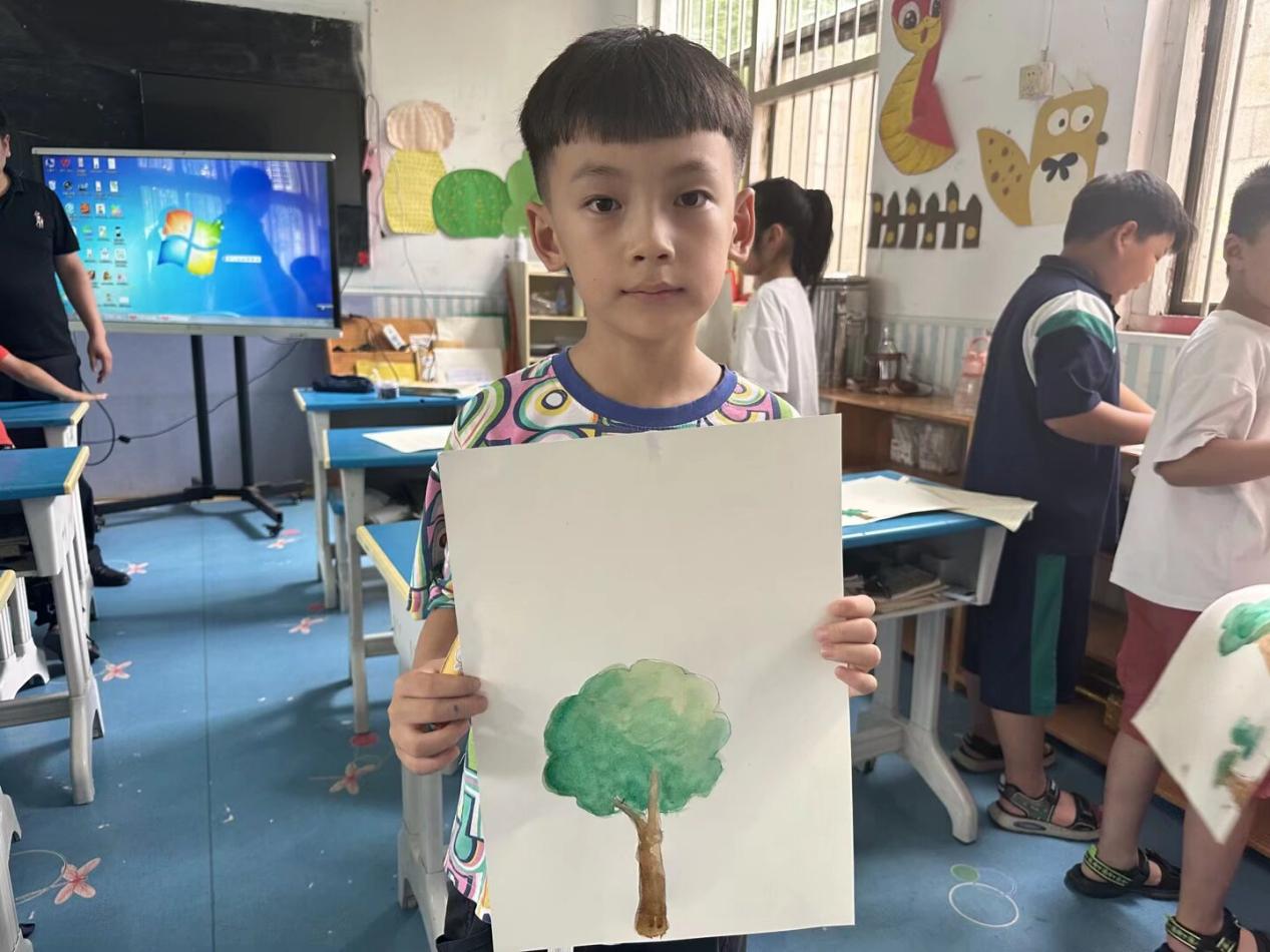 活动中,实践团聚焦特色课程设计与实施。在“水彩绘童心”环节,团队志愿者耐心引导孩子用画笔描绘美好世界,以斑斓色彩激发幼儿艺术想象力与创造力,提升其审美情趣;在联合国可持续发展目标启蒙课堂,志愿者通过生动故事和互动游戏,向孩子传递保护环境、节约资源、绿色出行等可持续发展理念,让公益教育更具深度与温度。