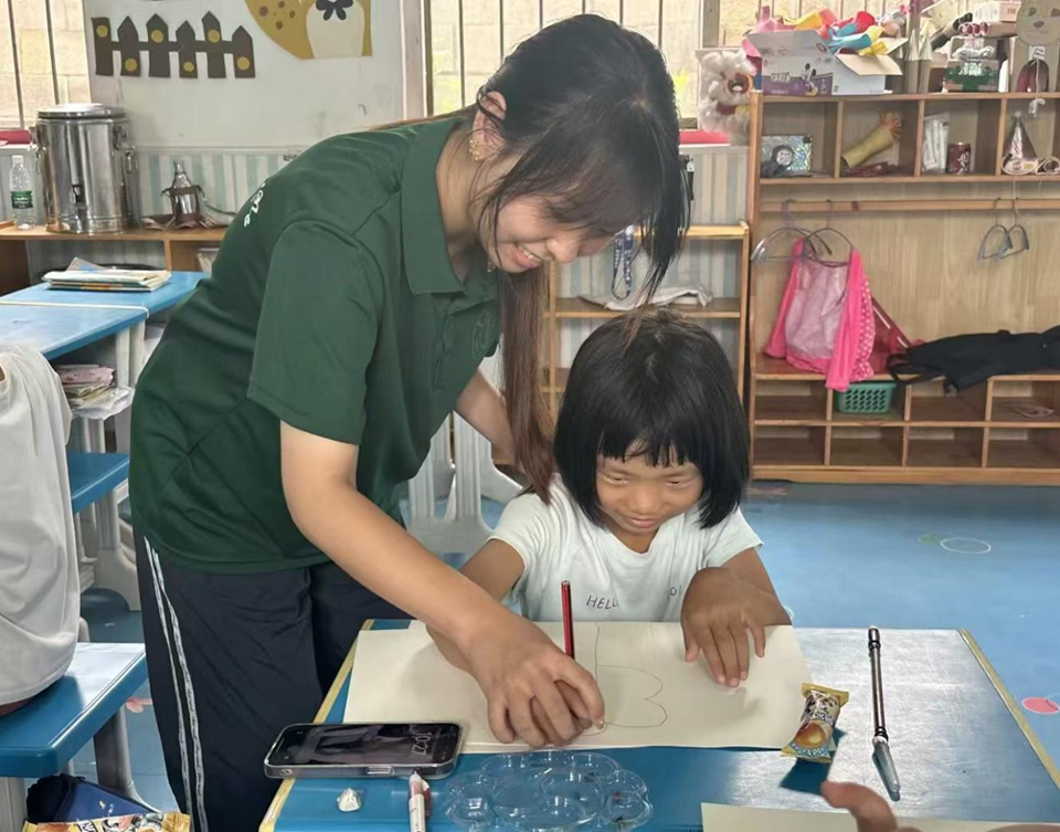 重坊一队队员以“播撒希望、赋能成长”为主题,在当地开设“绿色乡村”暑期支教课堂,累计服务当地百余名小学生。此次支教课程涵盖三大特色课程体系,共计15课时。其中,“水彩绘童心”课程通过绘画教学激发学生艺术创造力;“联合国可持续发展课堂”以趣味故事、互动游戏为载体,培养学生环保意识;“植物认知实践”课程则组织学生走进田间地头,开展植物识别、生长观察等实践活动,让学生在亲身体验中感受自然、理解生态也为搭建校地常态化教育帮扶桥梁贡献了青年力量。