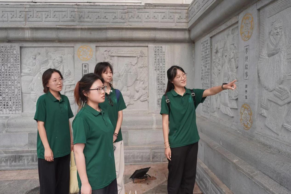 实践团以文化宣讲和实地研学为抓手,推动优秀传统文化传承与红色精神弘扬,助力乡村文化自信培育。一方面,鱼台队员们采用村民喜闻乐见的方言讲解、故事分享等形式,开展传统文化宣讲活动,重点普及孝贤仁德思想与农耕文明知识,让文化理念深入人心;另一方面,他们走访孝贤广场、稻改馆等文化地标,系统梳理鱼台“孝贤故里、水乡”的文化基因,为后续文化传承工作奠定基础。此外,重坊队成员走进知青馆、抗日战斗纪念馆,通过参观老照片、旧物件,聆听历史故事,深入感悟知青群体的奉献精神与抗日战争时期的峥嵘岁月,进一步强化文化传承与精神弘扬的实践根基。