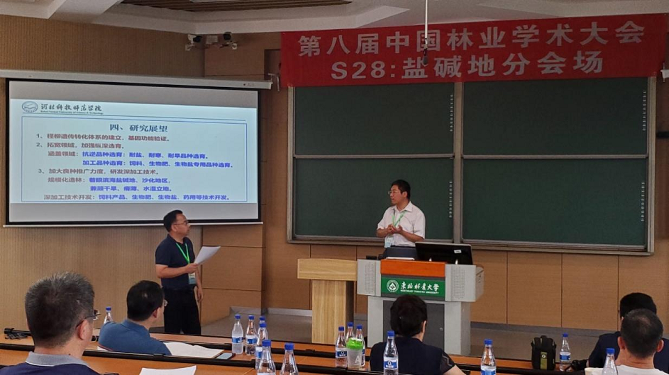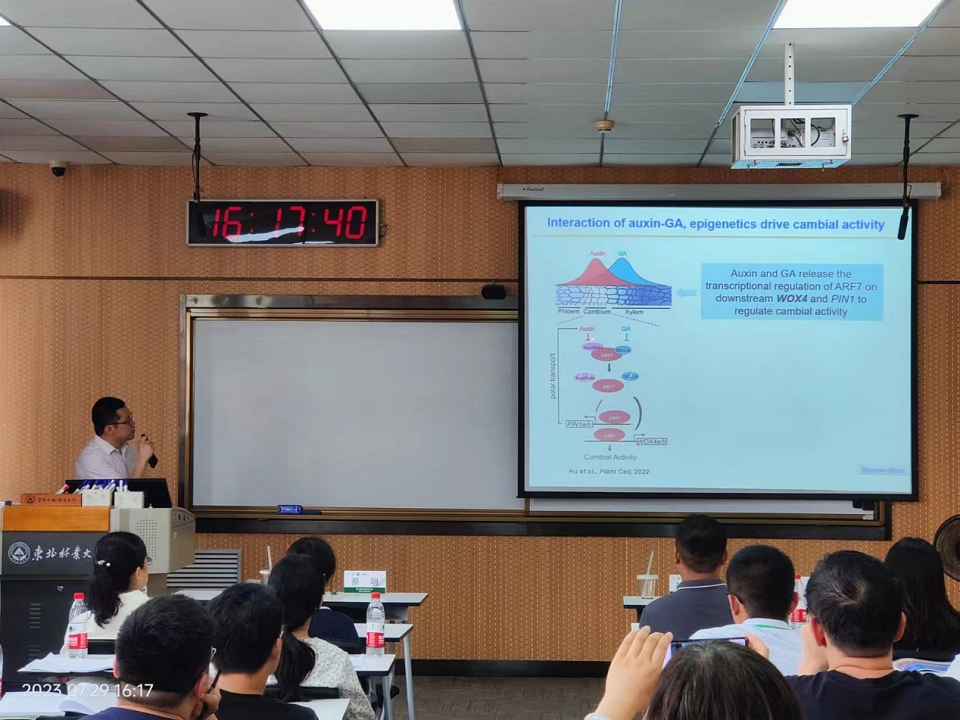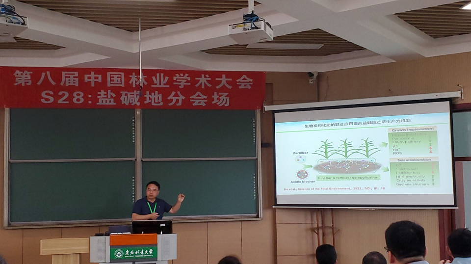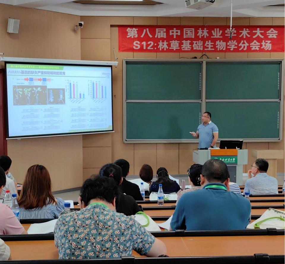 周功克教授团队6名成员报名参会,并进行了5场报告。其中周功克教授在S28盐碱地分会场担任主持人并进行了题为《耐盐饲用芒草产业关键技术研究》的特邀报告;唐贤丰教授和王殿副教授在S38青年科学家分会场分别进行了题为《蛋白泛素化修饰调控林木形成层干细胞发育研究》和《杨树BR合成基因CPD1的转录后调控机制对木材发育的影响》的报告;王丛鹏副教授在S12林草基础生物学分会场进行了题为《BR信号通路调控杨树木材发育的分子机制研究》的报告;孟杰副教授在S25经济林分会场进行了题为《银杏类黄酮和银杏酸的代谢分析及其生物合成研究》的报告。5场报告均取得了极大的反响,报告人与与会同行进行了热烈的讨论。