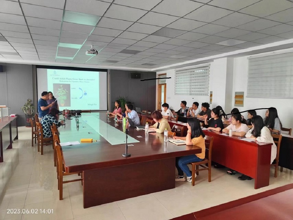 许明丽教授凭借其丰富的学术经验和前沿的科研成果,从形态学、表观遗传学、遗传学等不同角度为师生们讲解了拟南芥从营养生长向生殖生长中叶形态发育的变化,引起相关变化的基因调控路径、重点突出了micRNA在此发育过程中发挥的关键作用等内容。此次学术报告会的顺利召开,为广大师生提供了学习交流平台,增强了学生对科研前沿成果的了解。