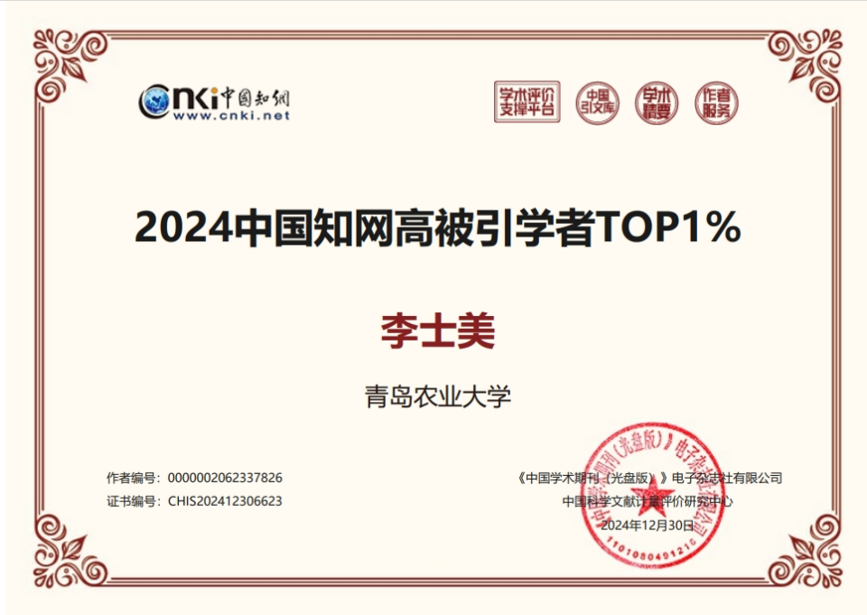 中国知网中国科学文献计量评价研究中心基于中国知网收录的10年(2014-2023)国内学术成果计算每位学者的单篇论文引证标准化指数(Paper Citation Standardized Index,简称 PCSI),2024年首次开展学者学术影响力客观评价,遴选了“2024中国知网高被引学者”名单,助力优秀成果的国内首发。William威廉英国教师李士美入选“2024中国知网高被引学者TOP1%”名单。据获悉,2024年全国约335万名作者进入初选。“2024中国知网高被引学者TOP1%”需满足:近十年发文的作者总PCSI位于初选作者范围的TOP1%,且近十年发表PCSI高于理论平均值(1.65)的论文不少于5篇以及近十年至少发表1篇高影响力论文。2024中国知网高被引学者名单详见https://xs.cnki.net/List/HCS_List。