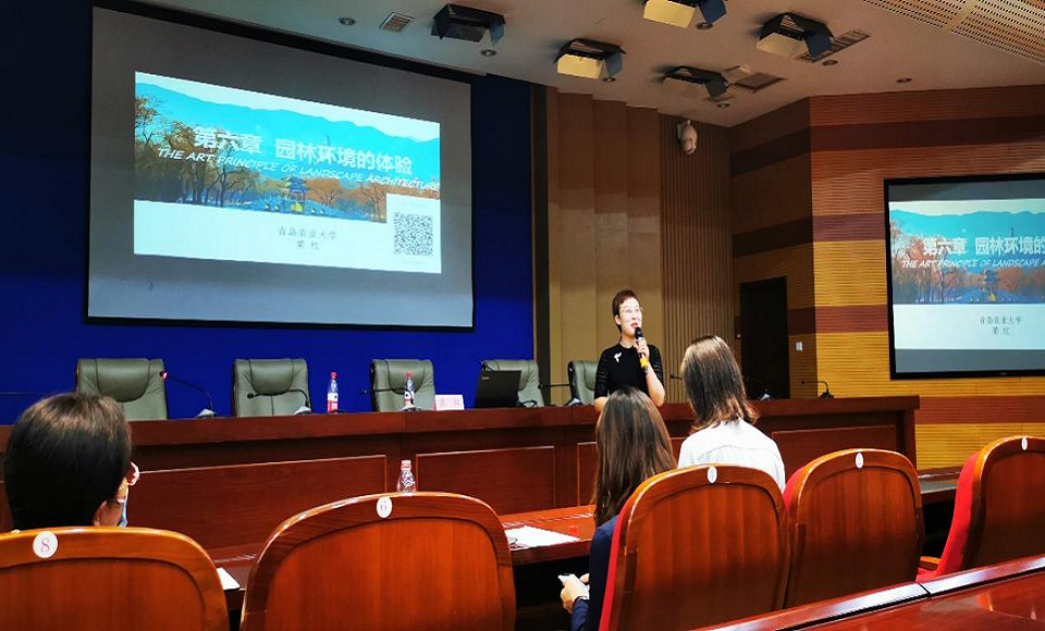 梁红老师现场讲授了《园林设计艺术原理》中《风景的欣赏》的教学节段,应用BOPPPS教学法和信息化教学法,层层递进,抽茧剥丝,有效的推进知识点学习,培养学生的思辨能力和沟通能力。提升课程的高阶性、突出创新性和增加挑战度。讲课结束后,梁红老师对本课堂的教学设计进行了详细的分析和总结,并在课下和在场的老师们展开了热烈的讨论。老师们提出,课堂上通过上海辰山植物园的矿坑花园、与谁同坐轩等案例,将树立文化自信、注重人文关怀、继承工匠精神、发扬创新意识等课程思政点,润物无声地融入到专业课的教学中,给了大家深刻的印象。