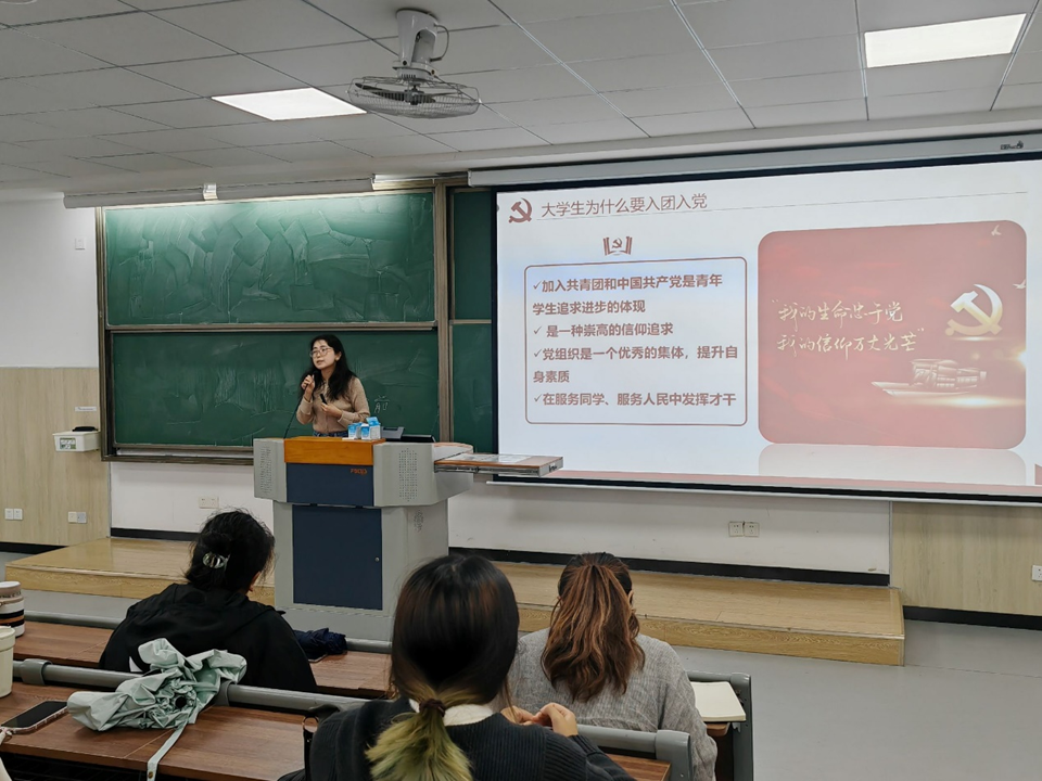 会上,许菲菲以“奋楫扬帆心向党,我与祖国共成长”为主题,围绕共青团的发展历史、党的光辉历程和入团入党的流程要求等重要内容进行细致讲解。同时,许菲菲希望学生们在大学期间保持积极的人生态度,牢固树立正确的人生观、价值观和世界观,坚定理想信念,积极向党组织靠拢;引导同学们要明确新时代大学生使命担当,铭记习近平总书记对广大青年 “立大志、明大德、成大才、担大任” 的劝勉,树立正确的入党动机。