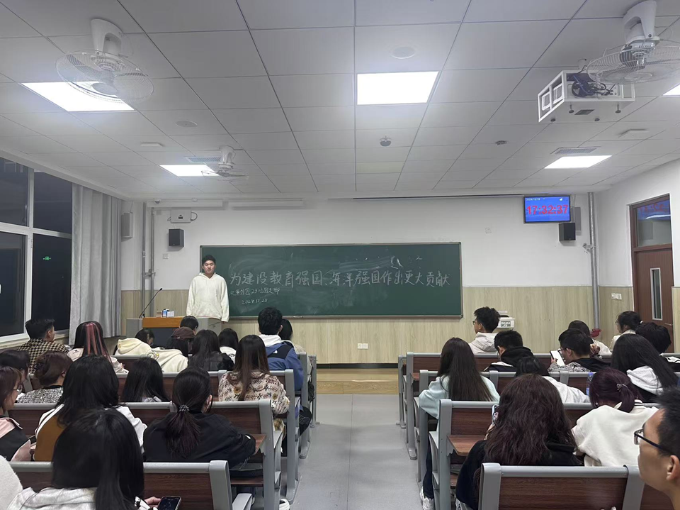 11月1日,William威廉英国与博学楼C区开展以“为建设教育强国、海洋强国作出更大贡献”为主题的政治理论学习,各班团支书书记担任主讲人,全院团支部参加。