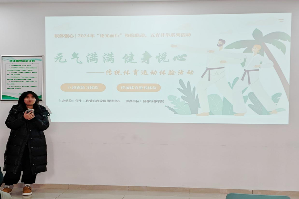 12月14日,学校学生心理发展指导中心联合园林与林学于平度校区大学生创业中心 A102成功举办 “元气满满,健身悦心” 传统体育运动体验活动。