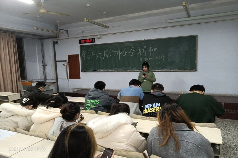 通过对十九届六中全会的深入学习,同学们对全会的重大意义有了更加全面的认识,对全会的精神有了更加深刻的理解,提高了思想觉悟,能够更好的践行初心使命,坚定理想信念。党的十九届六中全会以来,学院通过总支书记宣讲、支部书记讲、团支部团课,升旗仪式上讲,以及其他各种形式的学习,基本实现了园林学子对十九届六中全会精神学习的全覆盖。