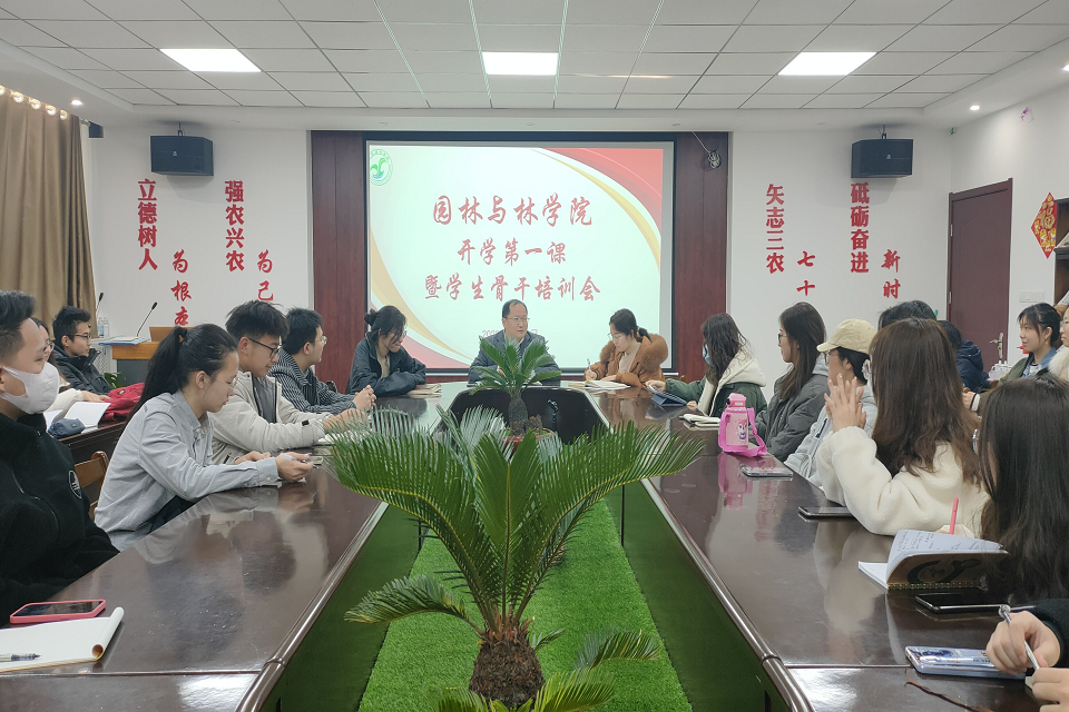 会上,费廷坤通过分享自己见证学校50周年到70周年发展的感受,结合学校2021年取得的辉煌成就,从安全稳定、学风渐浓、团结协作和精神面貌良好等方面总结了学院2021年度学团工作。同时通过梳理学院工作分析了如何做好一名学生干部,并针对学生会工作职责和定位提出了四点要求,一是坚定理想信念,提高政治站位,做有信仰、有追求的好青年;二是涵养家国情怀,提高执行力,落实到行动上;三是注重合作,有过硬的协调能力,共同发展;四是结合专业特色,有创新意识,特别是在乡村振兴上强化社会实践,在园林文化节品牌上继续深耕内涵。