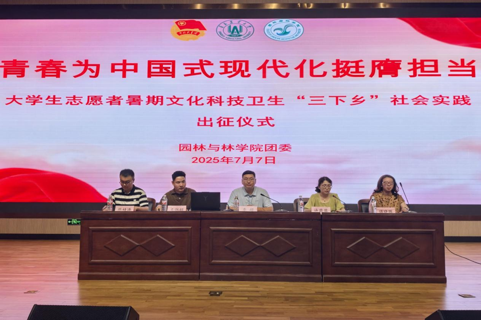 大会宣读了2025年大学生志愿者暑期文化科技卫生“三下乡”社会实践活动学院重点团队名单。学院社会实践指导教师代表王越超围绕“把论文写在祖国大地上”进行发言,鼓励园林学子要“到祖国和人民最需要的地方去”,在社会实践的大舞台上不断成长进步。学生代表、重点团队负责人陈顺正同学以“在社会实践中筑梦青春”为题发言,表示要以积极乐观的心态面对困难,用团队的力量攻坚克难,在火热的实践中锤炼品格,用暑期社会实践成果展现新时代青年的风采。