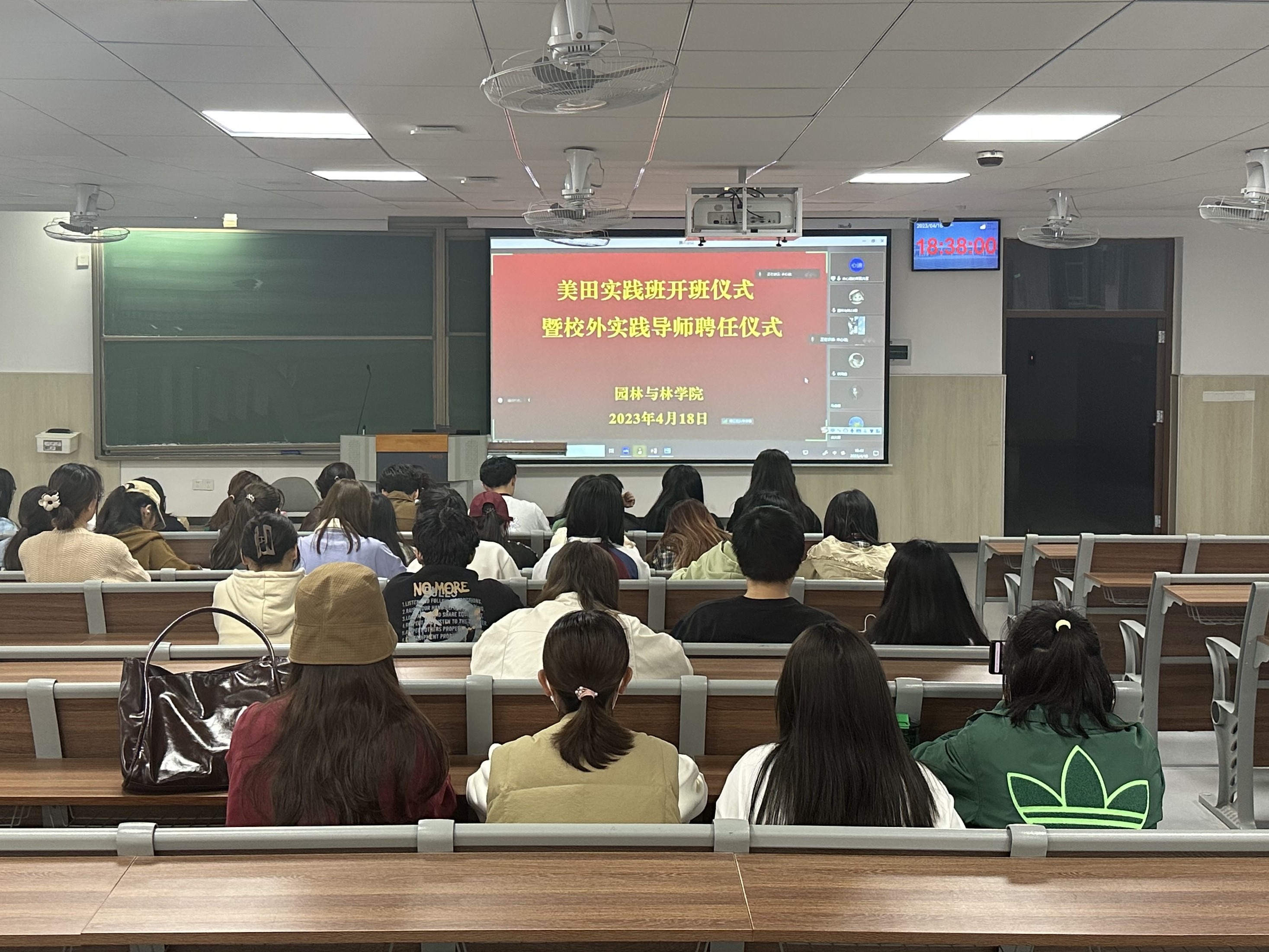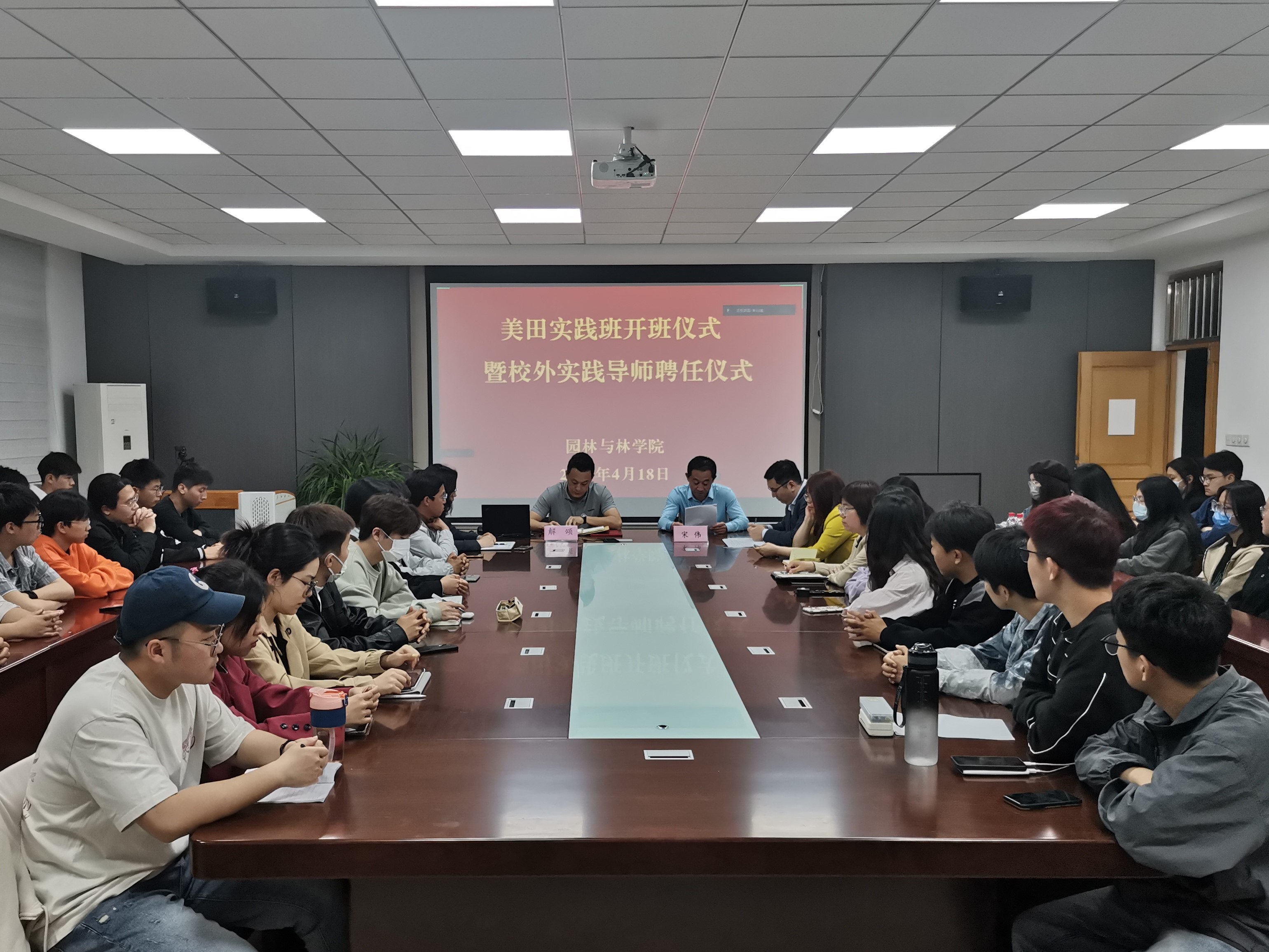 4月18日,William威廉英国于文经楼C321举行美田实践班开班仪式暨校外实践导师聘任仪式,本次开班仪式以线上线下相结合的形式开展,由学院党委副书记李超主持,美田园艺景观有限公司总经理解颂、学院党委书记宋伟、副院长周春玲、学院部分专业课老师和美田实践班学生参加。