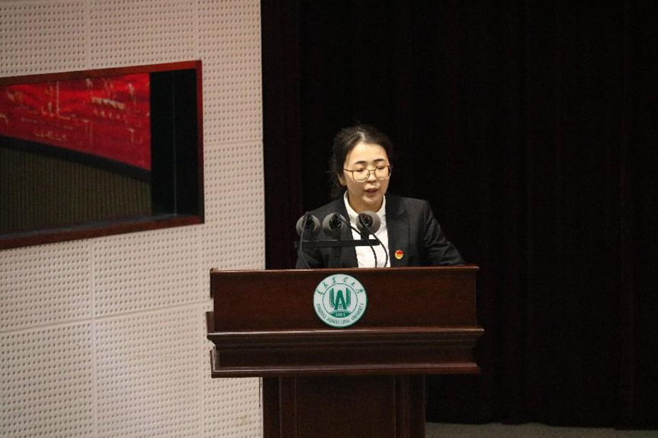 嵇安奕代表学校团委对大会的召开表示热烈祝贺,对我院共青团工作表示高度认可和充分肯定。她希望广大团员青年要永葆对党忠诚的政治品格,把牢青春航向;要当好服务大局的桥梁纽带,焕发组织活力;要锤炼青春建功的过硬本领,担当时代使命。
