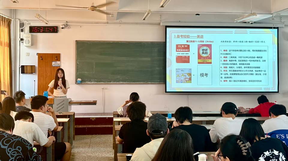 李珺成功考研上岸北京林业大学,她从院校与专业选择、复习计划制定、心态调整等方面展开分享。李珺特别提到,在考研过程中,要制定科学合理的学习计划,并保持良好的作息和心态,遇到困难时学会向老师、同学求助。“坚持到最后,就已经战胜了许多人。” 她的经验分享为决心考研的同学注入了一剂强心针,鼓舞了大家的士气,让同学们对考研之路充满了信心。