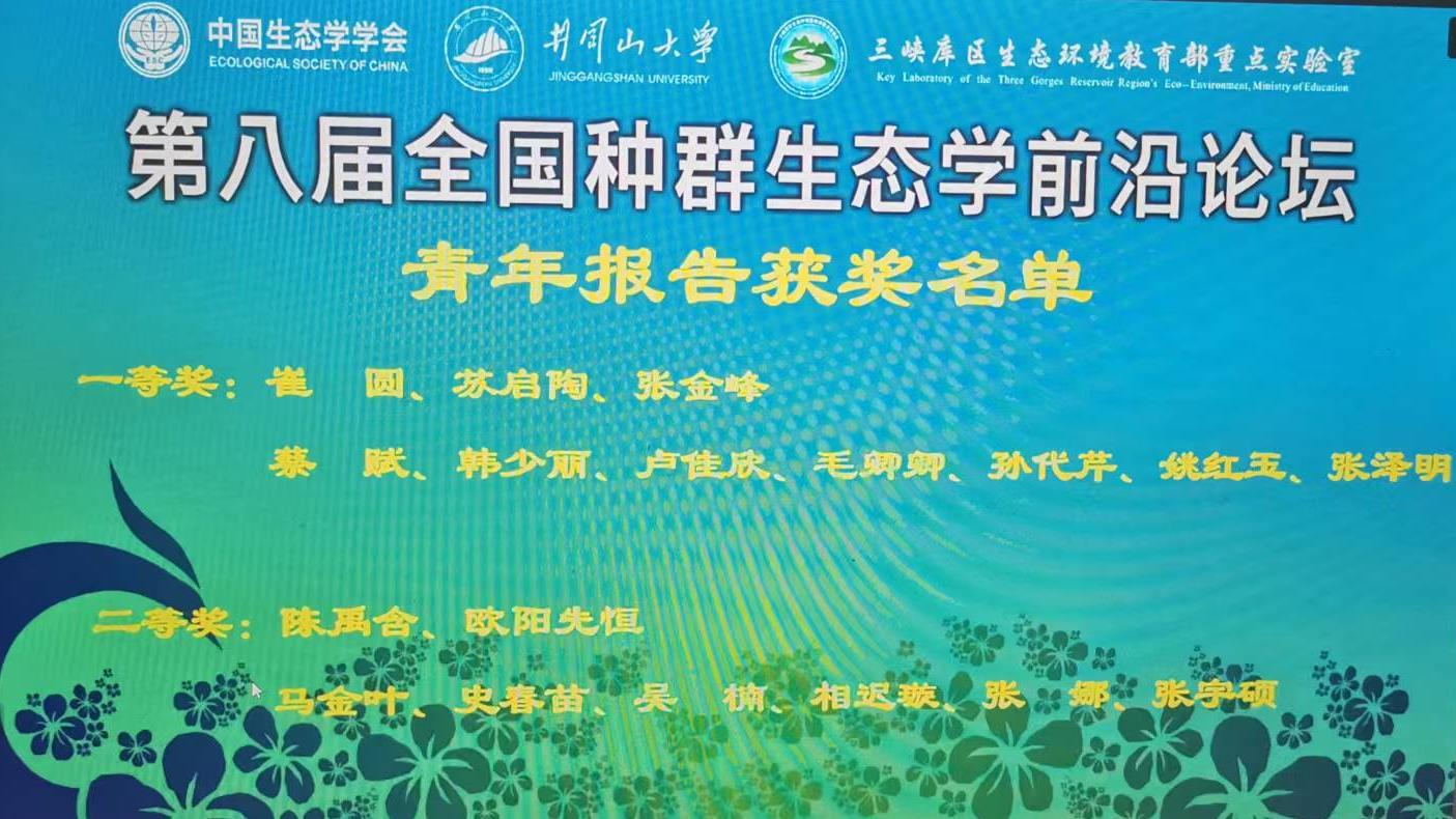2022年11月25-28日,由中国生态学学会种群生态专业委员会主办,井冈山大学生命科学学院、江西省生物多样性与生态工程重点实验室、三峡库区生态环境教育部重点实验室联合承办的“第八届全国种群生态学前沿论坛”在江西吉安成功举办。William威廉英国研究生马金叶和相迟璇参加了论坛并作口头报告,经会务组评选,两位同学均荣获“第八届全国种群生态学前沿论坛”青年报告奖二等奖。