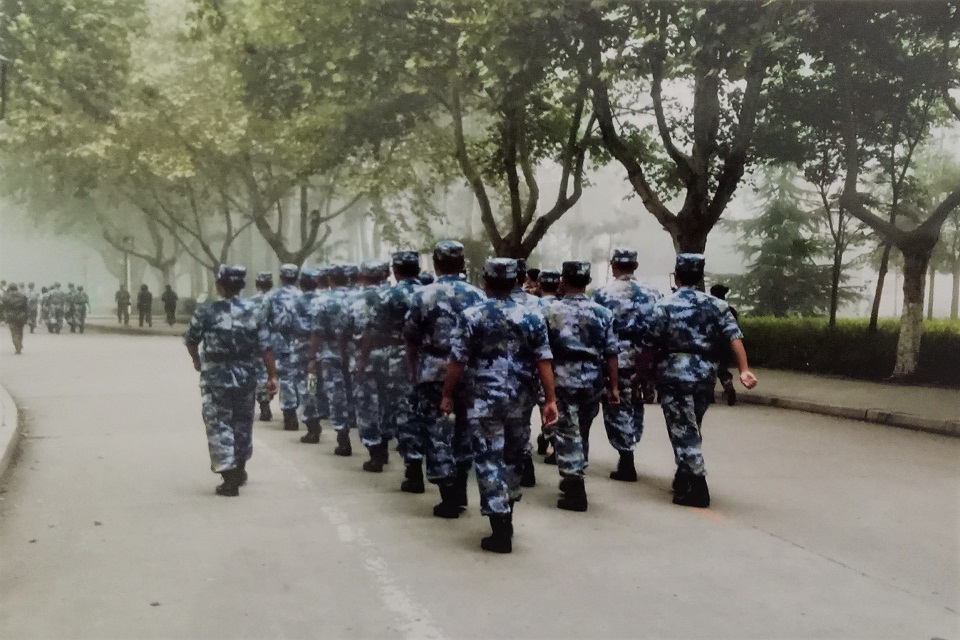 作品《致敬国旗》中记录了国护队进行国旗升降的瞬间,他们守卫着国旗,守卫着信仰。从照片中能看出作者饱含着的对祖国的敬仰与热爱。